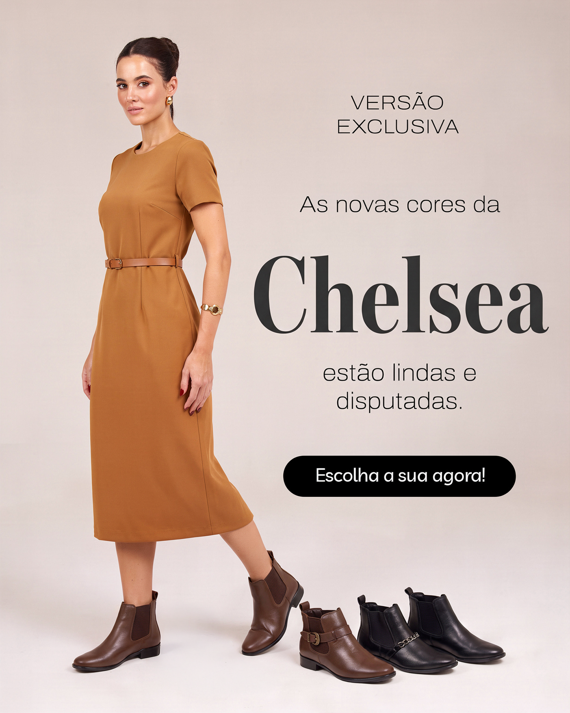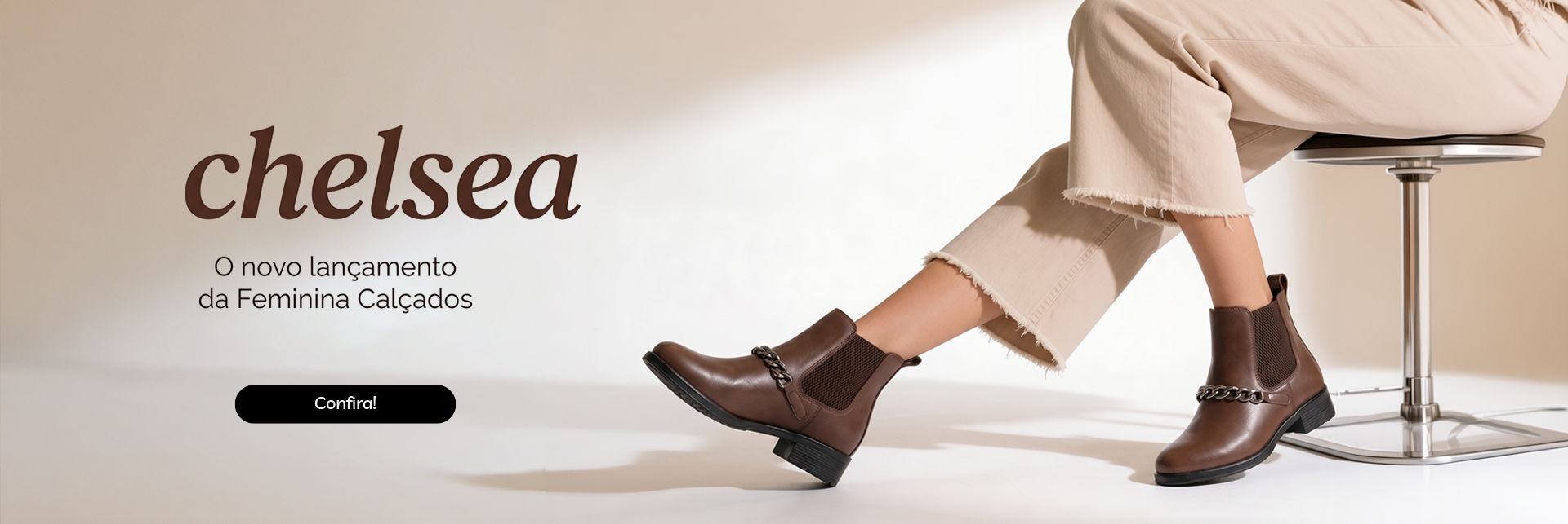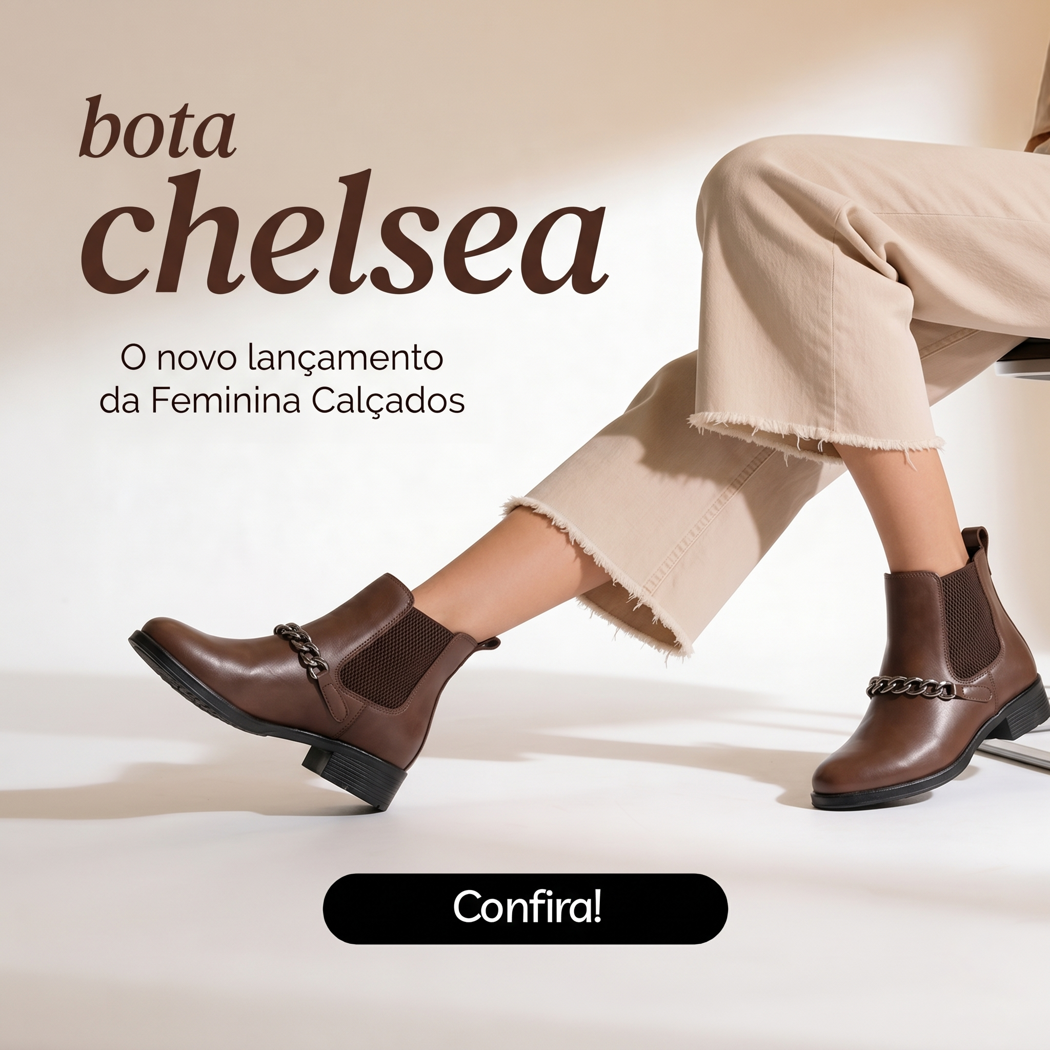 Bota Feminina Chelsea com Corrente em Couro Legítimo Cano Médio